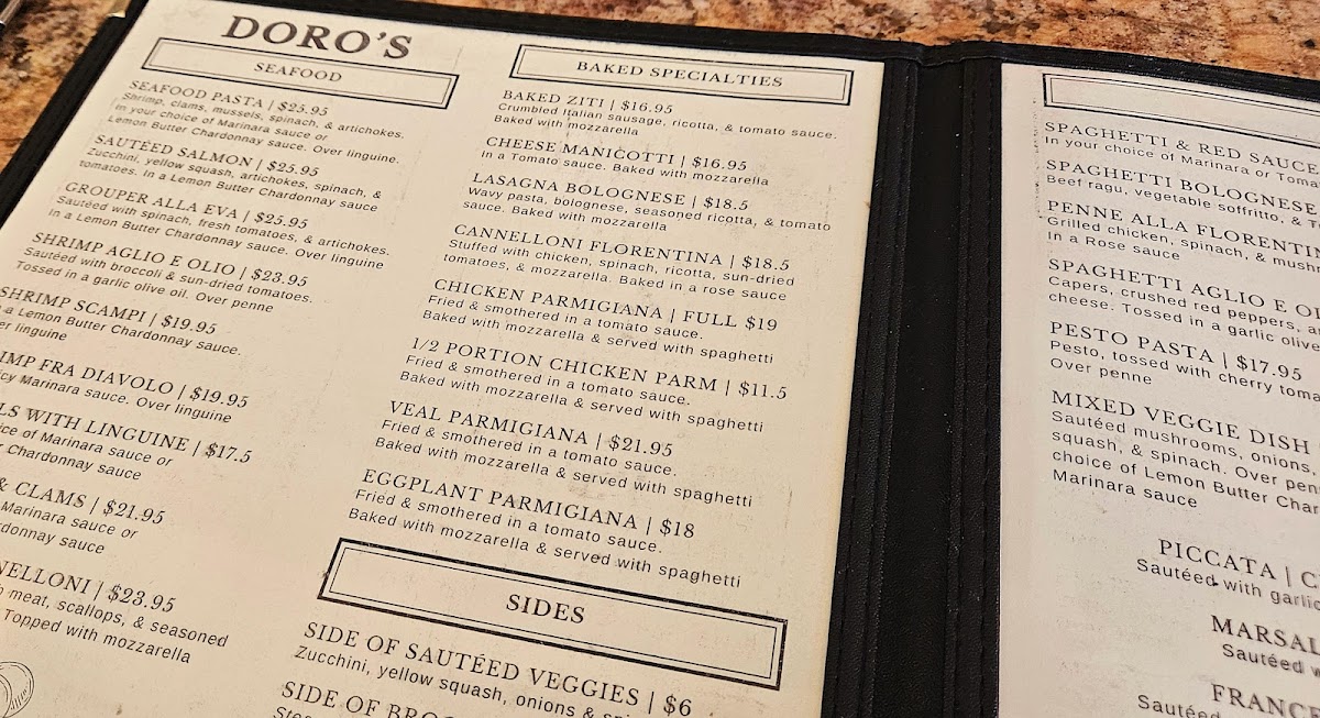 Not to be missed are the homemade cannolis for dessert, as they are crafted fresh to order. Doro's commitment to quality and flavor is evident in every dish. Diners rave about the cozy atmosphere and attentive service that make each visit special. For those seeking genuine Italian flavors, Doro's Italian Restaurant is undoubtedly a must-try.